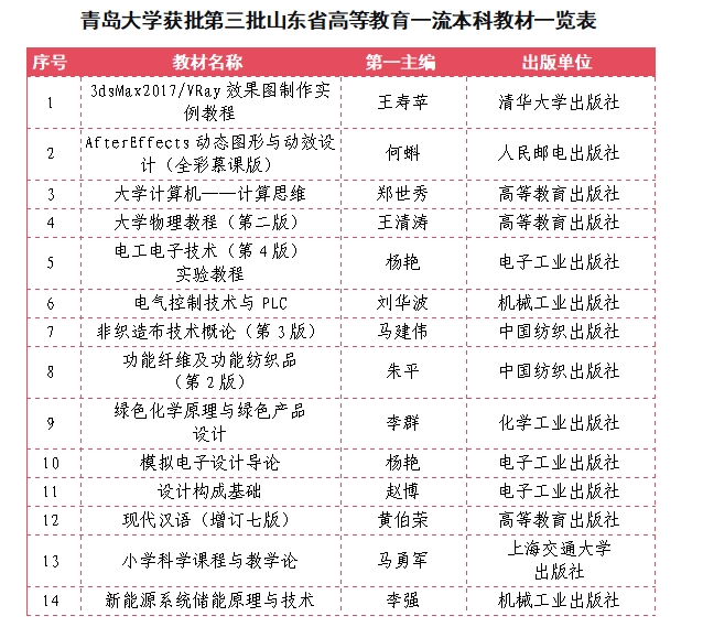近日,教材委员会办公室发布了第三批通俗高档教育一流教材名单,我校共有14部本科生教材入选。至此,我校正在三批省级一流教材评选中累计获批31部本科生教材。